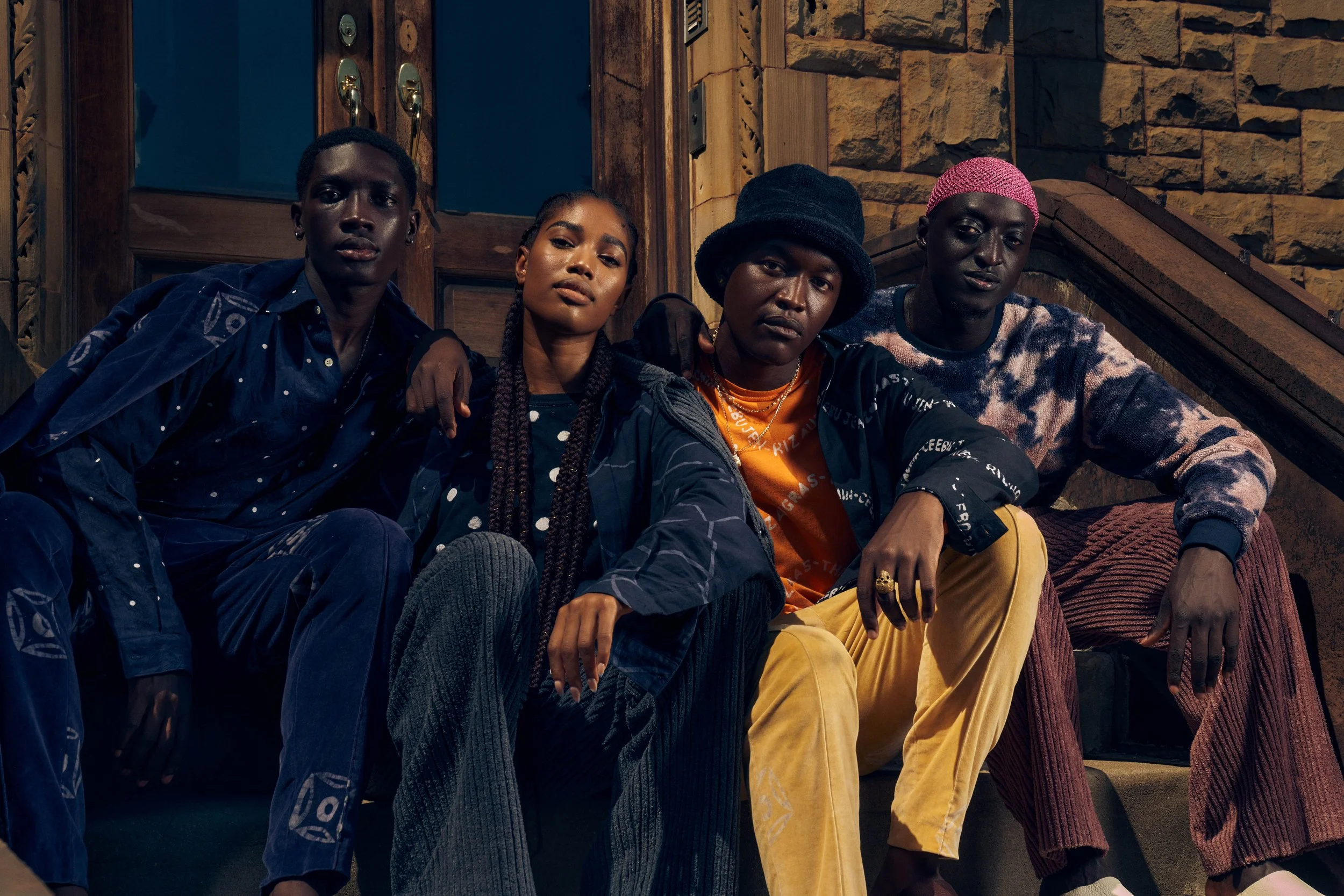 This collection is inspired by Jollof, the rice dish prepared by most West African countries. Known by many names, it has become a bridge— a symbolic ice-breaker of sorts for when these different communities come together. The fabric choices in this collection highlight Jollof's color and texture and capture and emote the sense of intimacy, warmth, and comfort one feels in a community. Lubaina Himid's works, which illustrate people in the African diaspora in the community, also inform the collection.