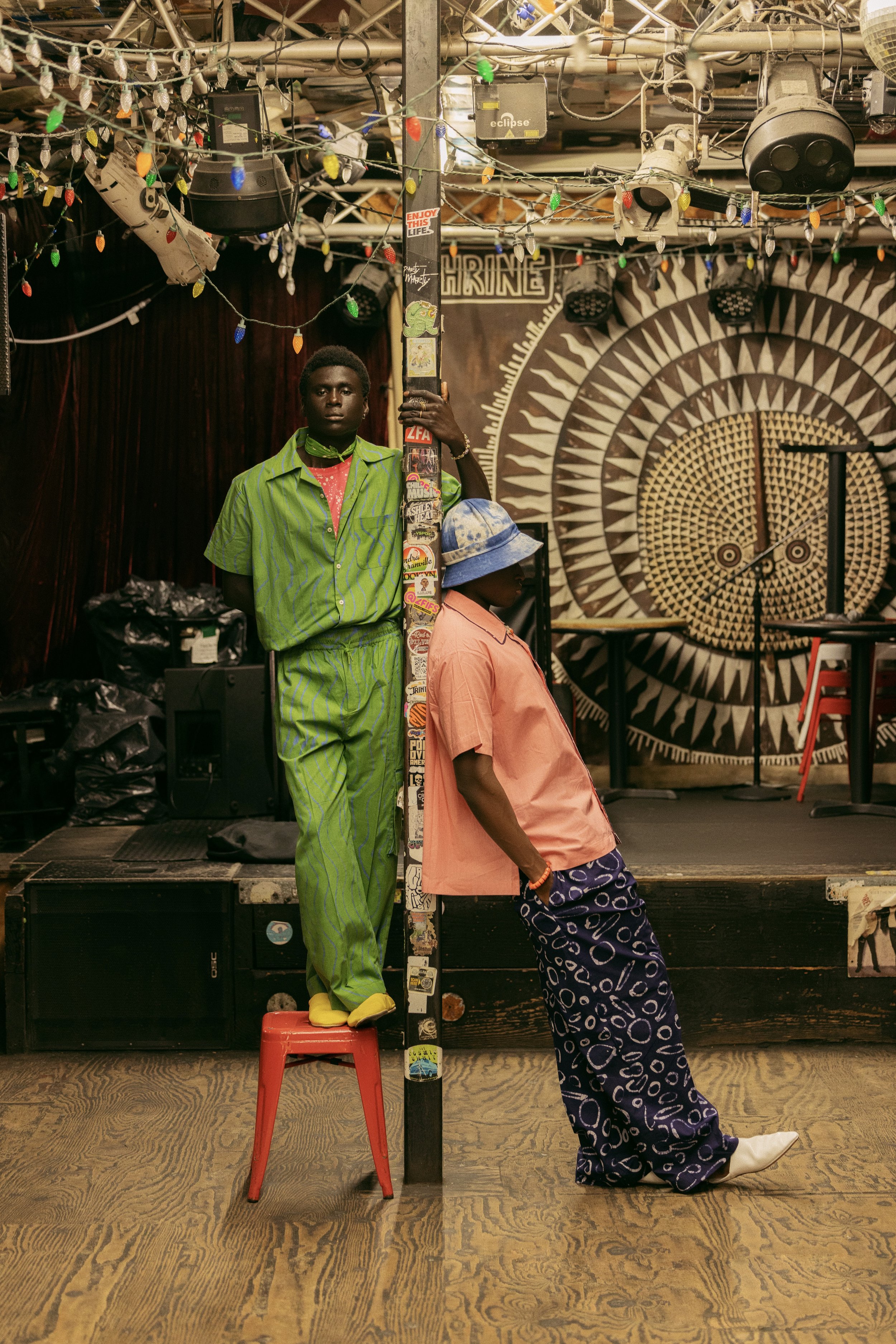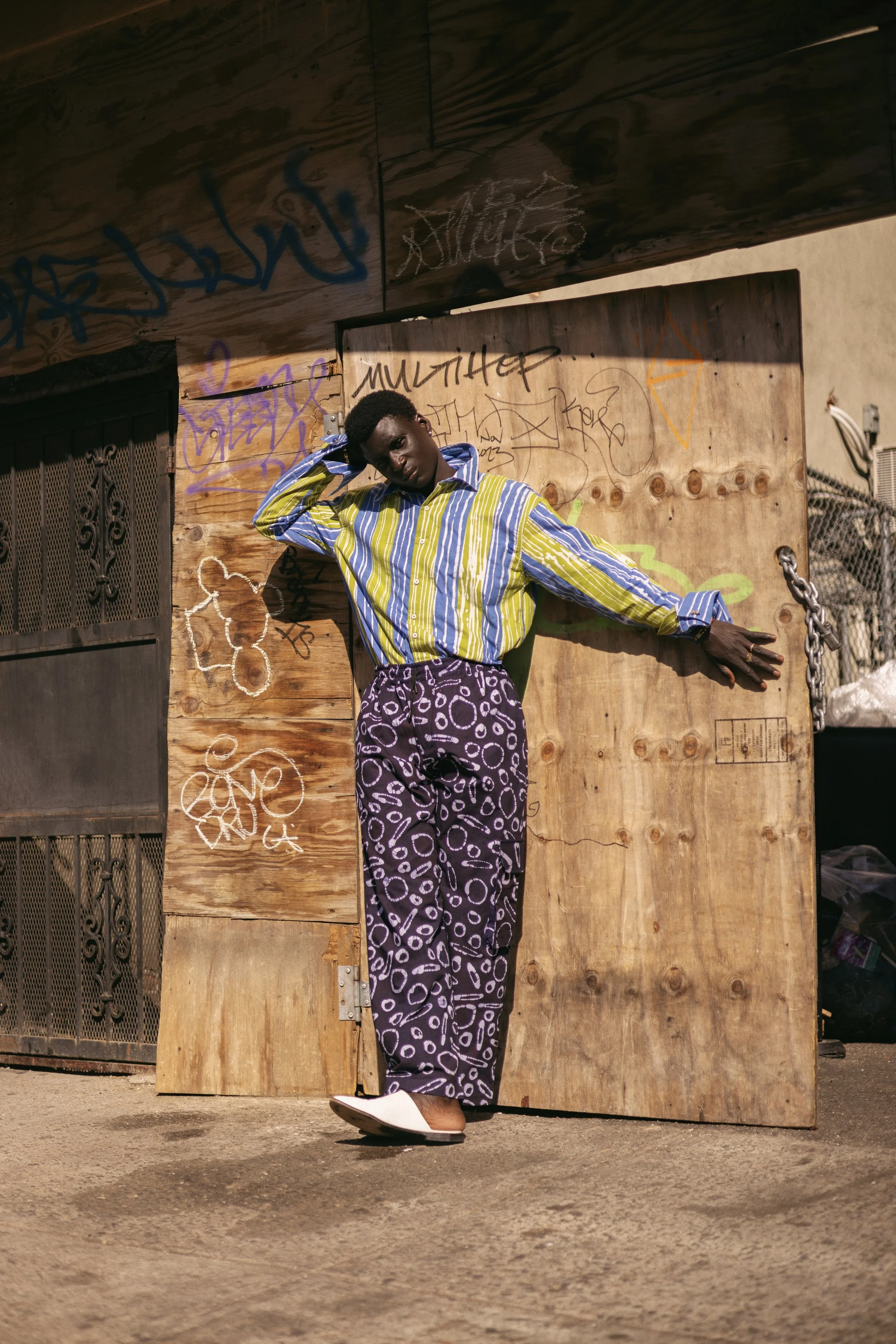 Remnants takes cues from artists such as Noah Purifoy and El Anatsui, who create beautiful artwork with found objects from their environment.The collection includes a range of colorful tops, pants, and hats that feature signature Adire dyed prints (a centuries-old traditional dyeing technique developed in the Southwest region of Nigeria) as well as a textured patchwork style that references the people of the Baye Fall, a religious community from Senegal.