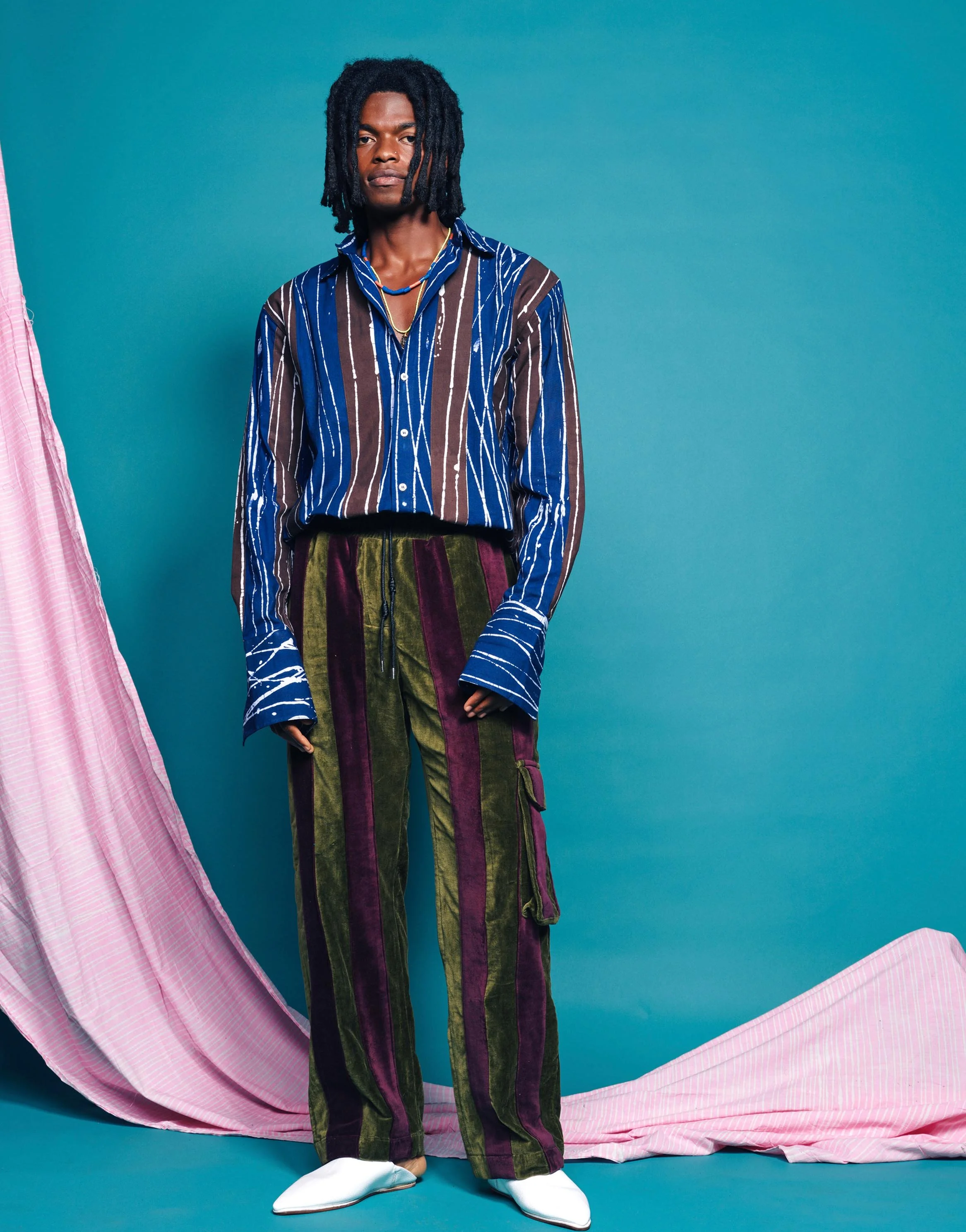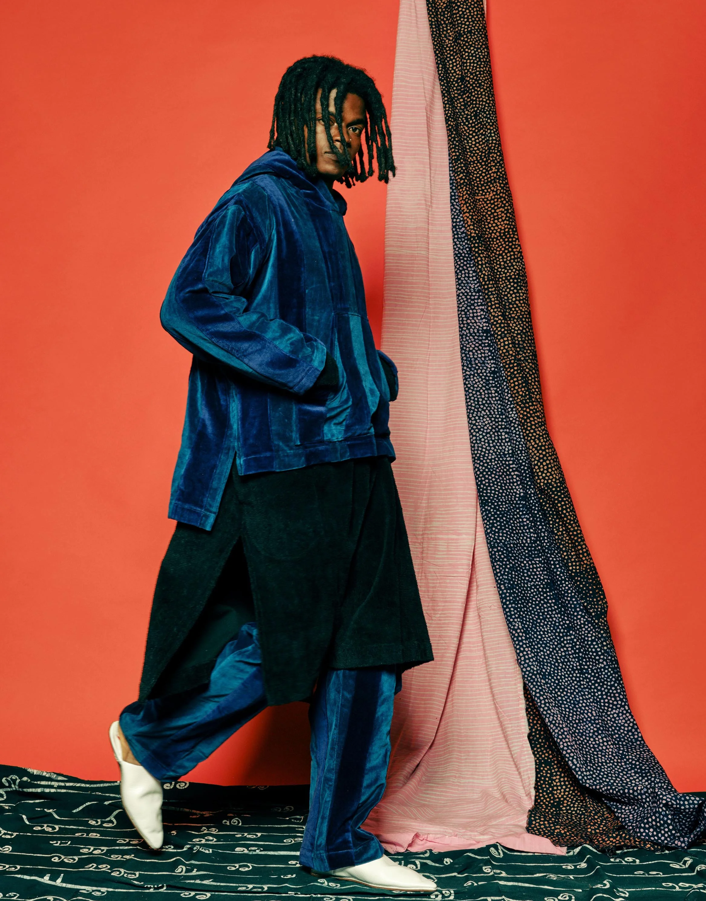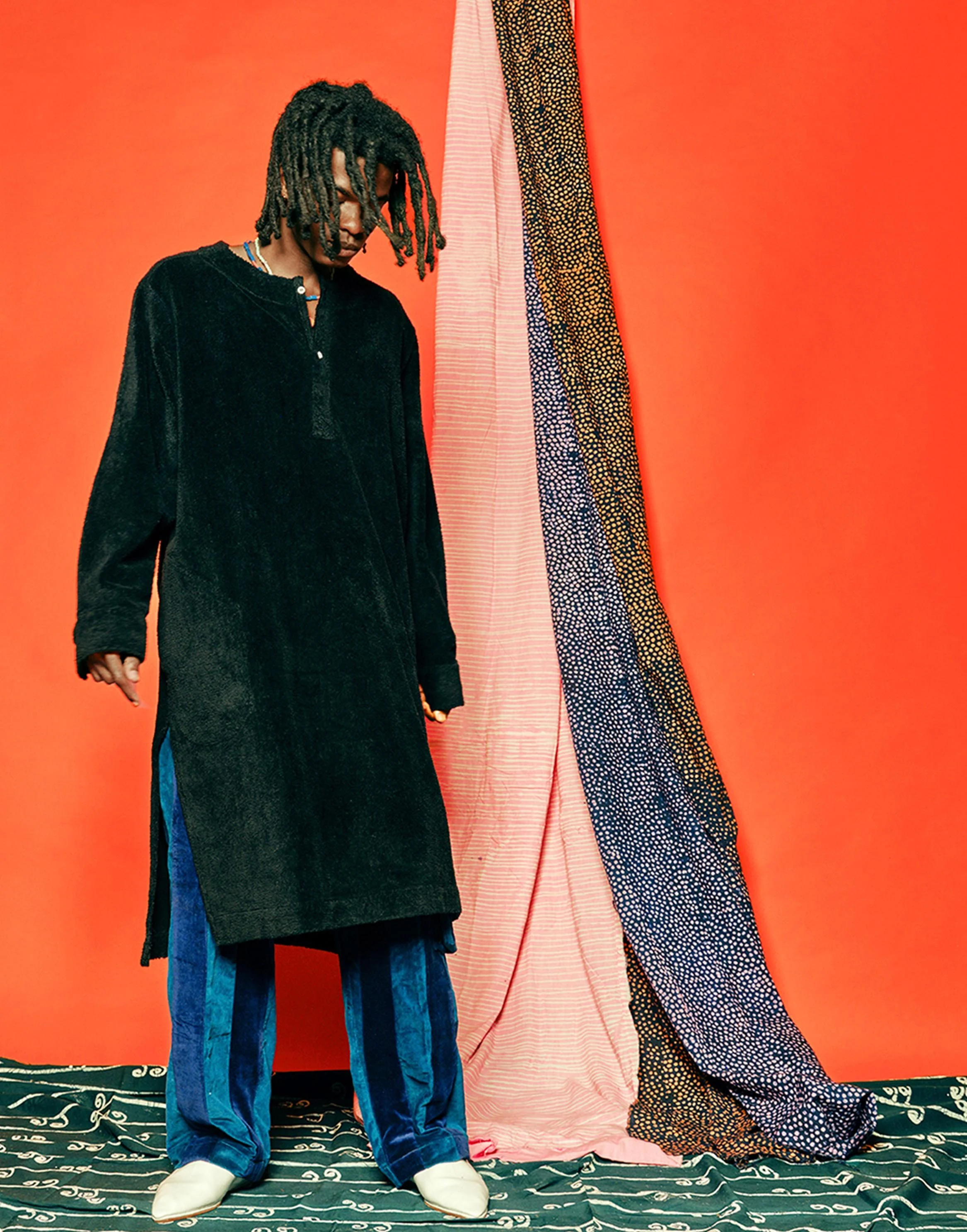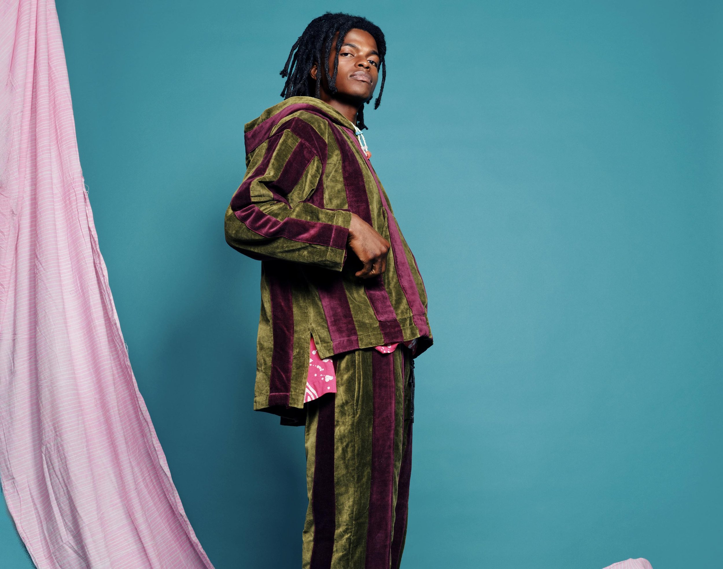 This collection celebrates the profound love I received from friends and family through phone calls and text messages during a challenging period in my life, as well as the loss of a friend. Inspired by Erykah Badu's song "Telephone," which pays tribute to the late J Dilla, it has given me a fresh outlook on the strength of community. Soft textiles like velvet and sherpa influence the designs in the collection, crafted into comforting silhouettes.